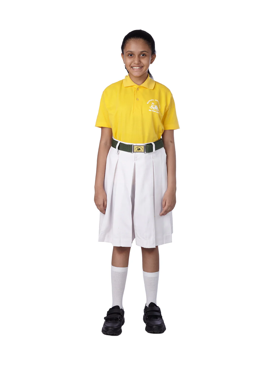 Yellow half-sleeve T-shirt with school logo (as prescribed by the school).
